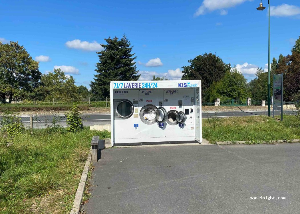 KIS’wash laundromat. Two washing machines of 18 kg and 8 kg and an 18 kg dryer. Next to the car wash and gas station.