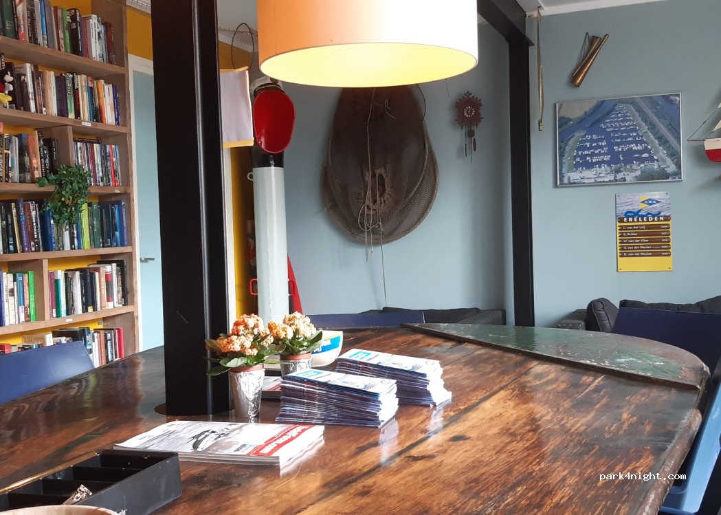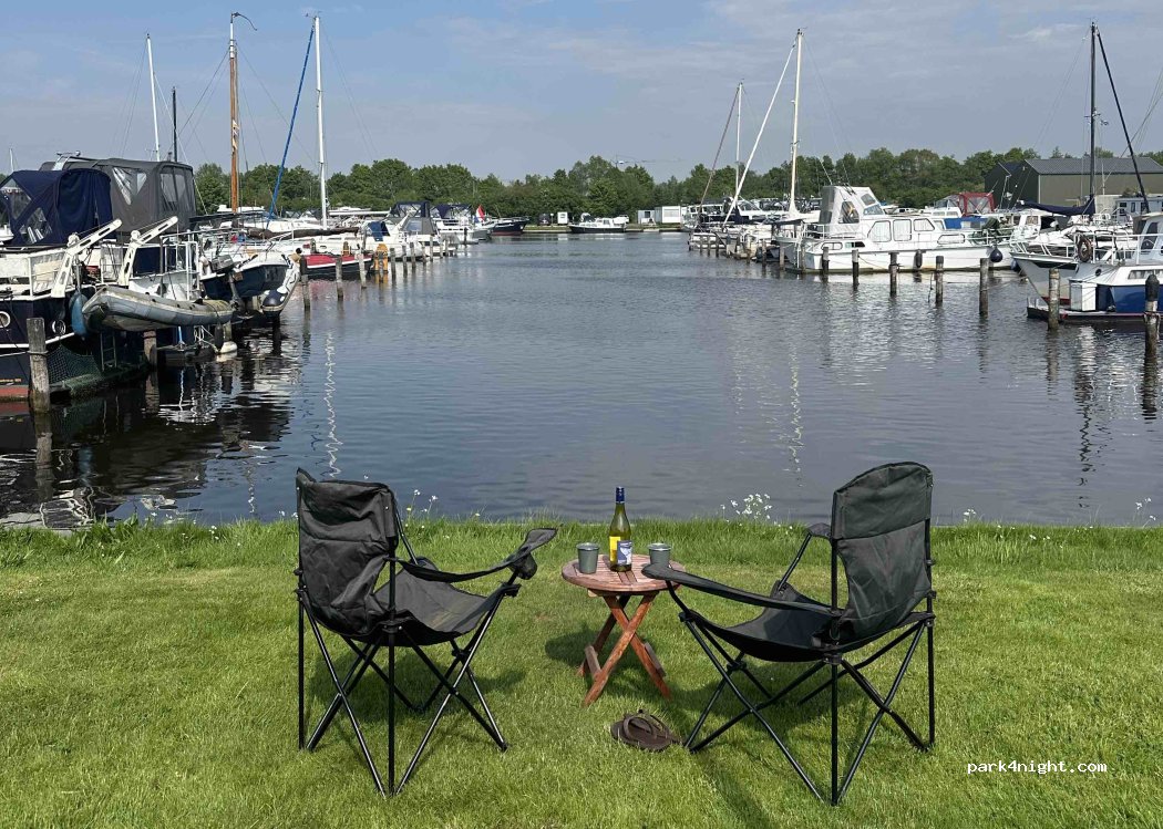 Prachtige (verharde) camperplekken met uitzicht op een levendige haven vooral op de wissel dagen van de yachtcharters.