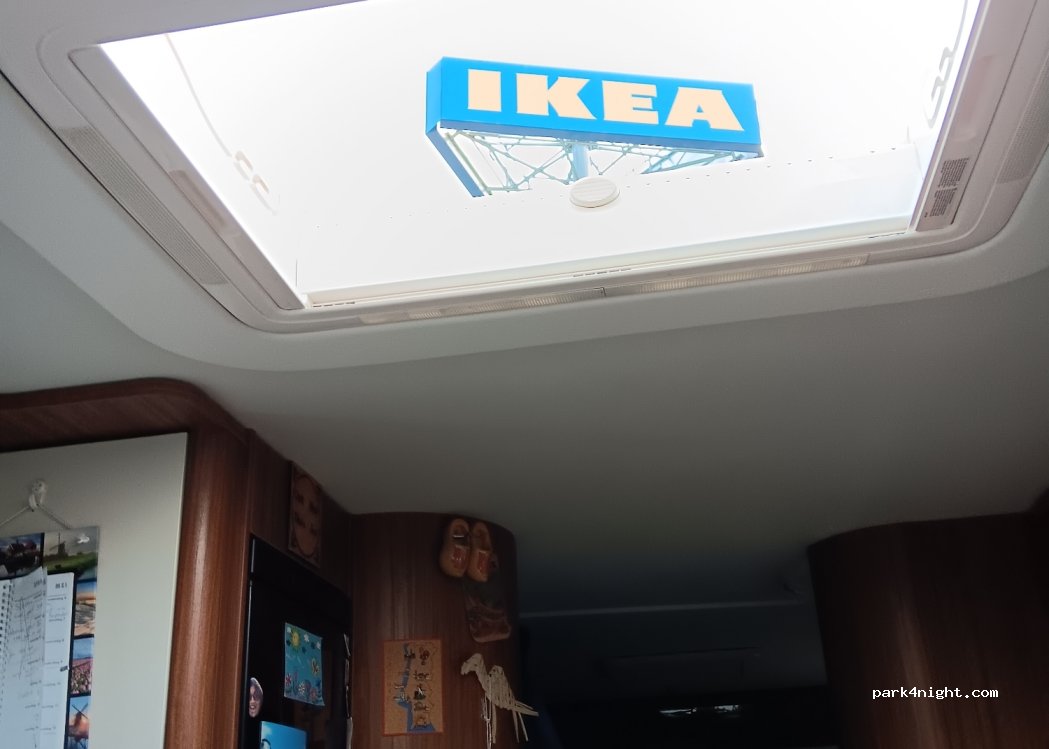 Grote parkeerplaats voor Ikea Aarlen. Goed alternatief voor snelwegparkeerplaatsen. Het heeft vlakke ruimtes en is 's nachts rustig (afgezien van het achtergrondgeluid van auto's op de snelweg). Er zijn bakken beschikbaar. In de vroege ochtend beginnen de bevoorradingsdiensten met leveren, en vanaf 9.00 uur wordt het druk op de parkeerplaats, omdat dan de winkels opengaan. Voor eten kun je terecht bij Ikea of McDo.