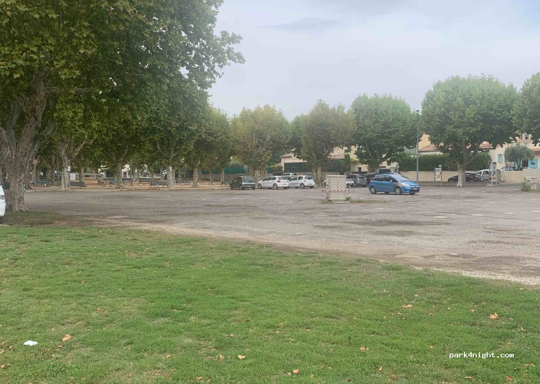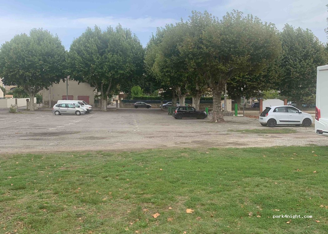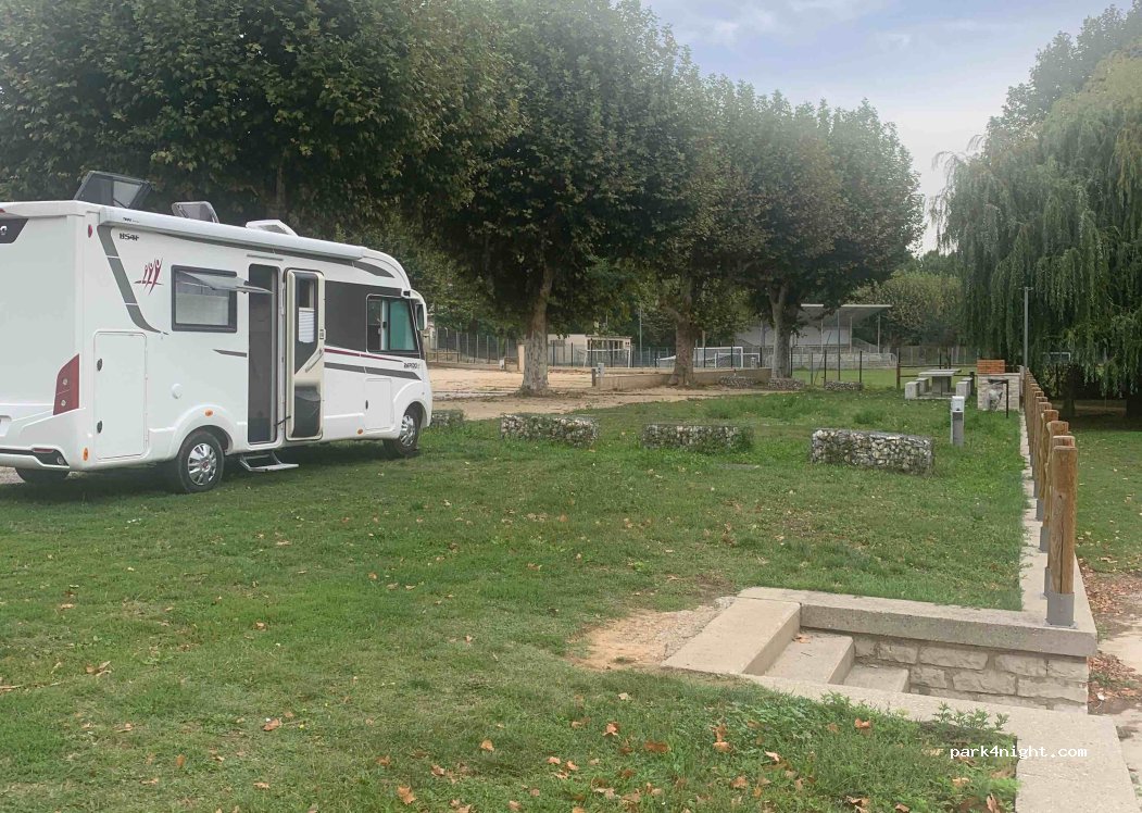 Large car park with shaded or unshaded spaces, right opposite the Camping Car Park. Quiet and close to the stadium and a park for walking. Picnic tables and a barbecue available.