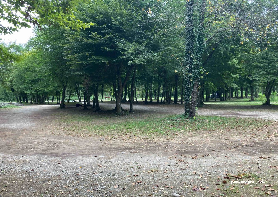 Stationnement apparement interdit la nuit. Barrière a 2m10 ouverte. Ombragé, calme et proche du lac pour baignade. Parfait pour picnic.