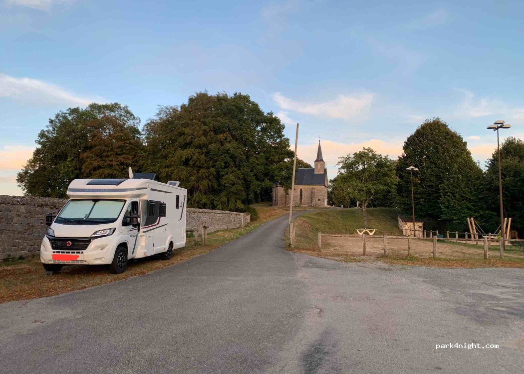 Accès facile. De la place pour plusieurs CC. Très calme, longé par une petite route sans circulation. Aucun service. A 50m d'un très jolie point de vue près de la chapelle, surplombant le village, parfait pour un coin lecture.