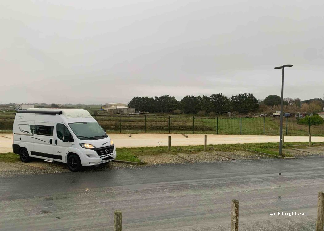 nous avons passé une nuit , endroit calme, face à la mer et le pont de l'île de Ré. à proximité restaurant de fruits de mer, ainsi producteur d'huîtres et moules en vente de 8h à 12h. wc et douche à proximité mais fermé. bel endroit , nous Reviendrons sans hésitez.