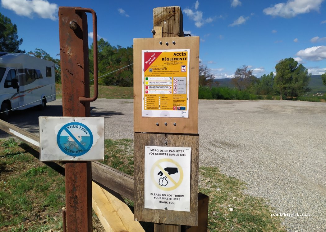 Parking camping car ideal pour visiter les mines d'ocre, plat et quelques points d'ombre. interdit de camper et surtout de faire du feu.