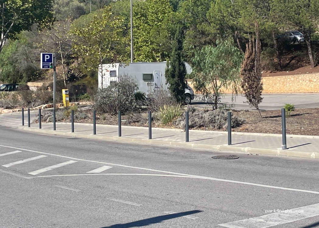 Paid parking without height limitation and with spaces suitable for motorhome. With possibility of shade