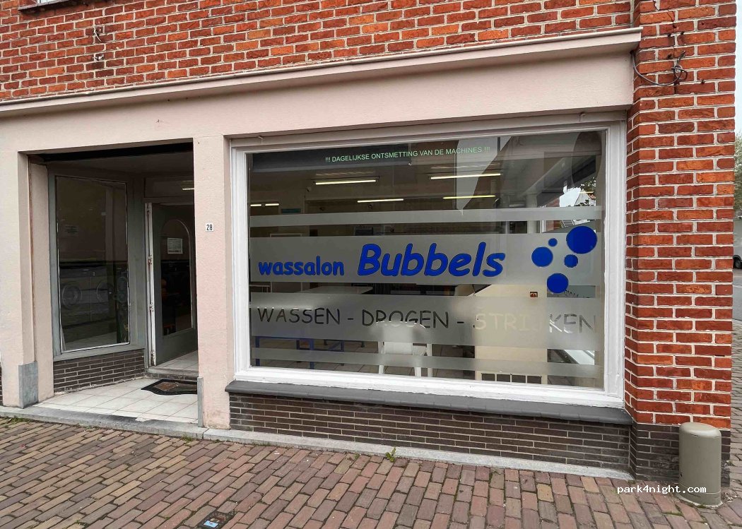 There is a small launderette here where you can do your laundry on the way to Bruges. There is a parking lot next to the laundromat where you can park. However, this is not suitable for a motorhome.