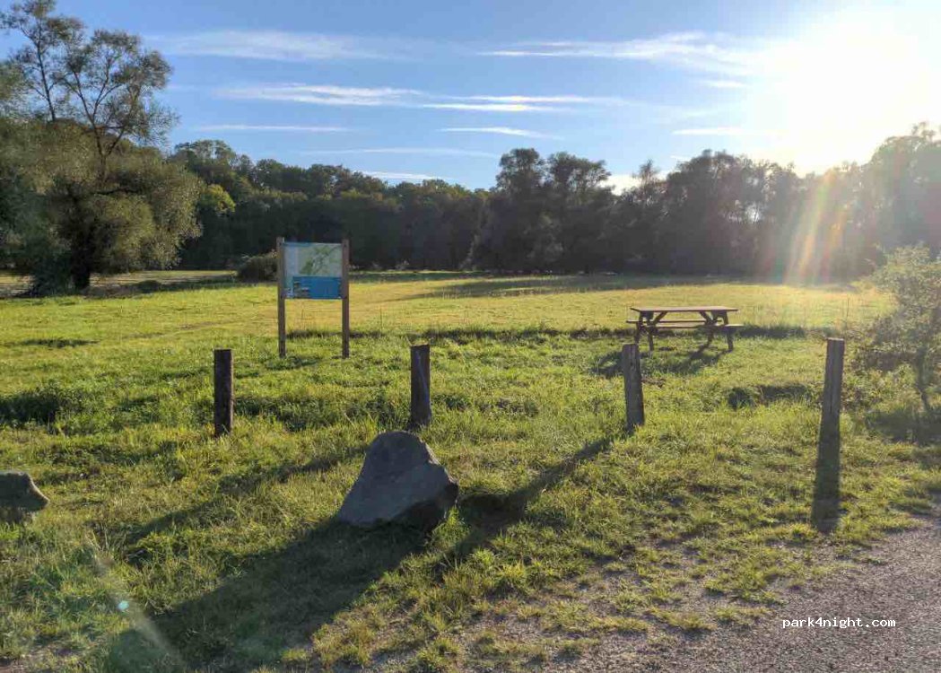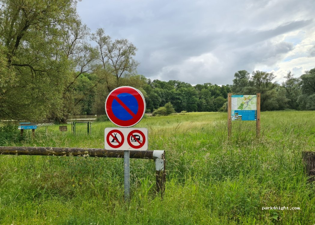 Neben Le Pavillon Bleu gibt es öffentliche Parkplätze in ruhiger Lage neben einem Fluss und mit Blick auf einen See mit Springbrunnen. Es gibt sogar einen Picknicktisch. Die Internetverbindung ist nicht so toll DL: 10 Mbit/s UL: 0,6 Mbit/s