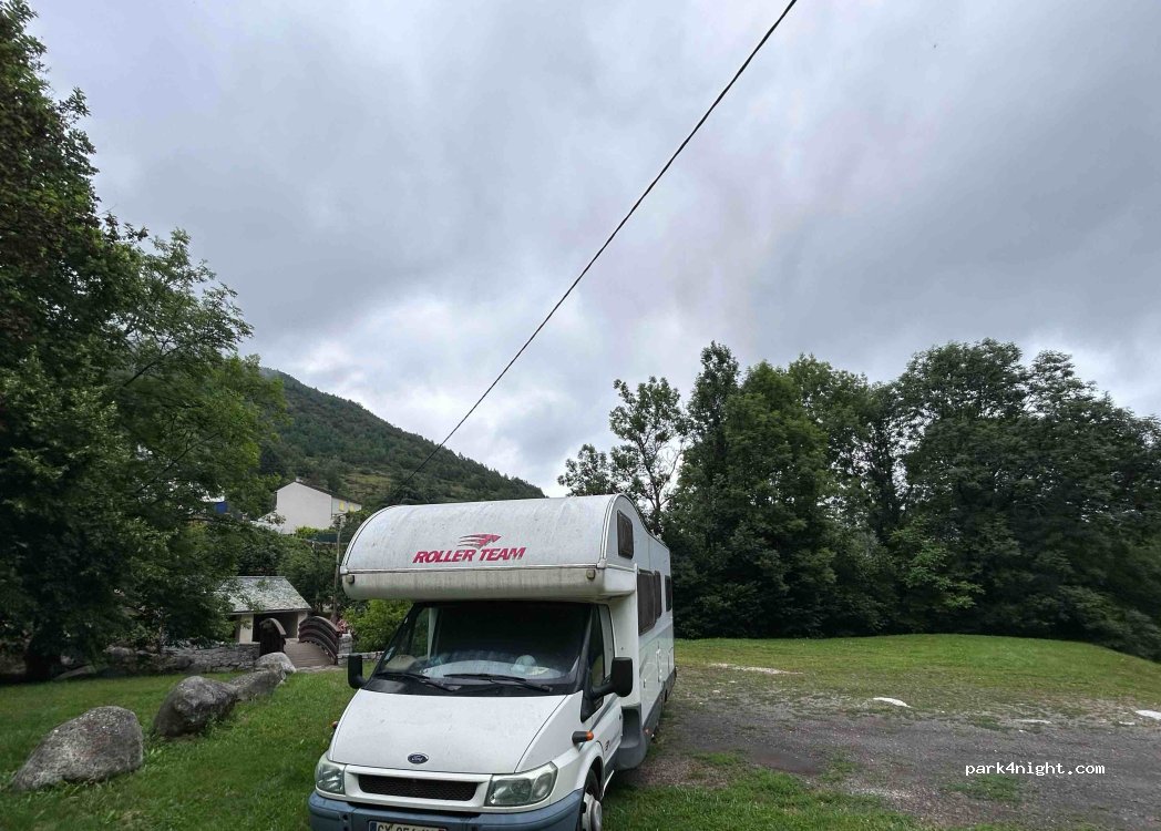 Nuit au calme nous étions seuls. Merci à la mairie pour la mise à disposition. Attention à ceux qui n’aime pas le bruit de l’eau car la rivière coule fort.