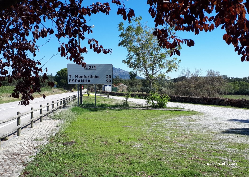 Merendas Park. Gleich nach dem Medelim-Ausfahrtsschild Richtung Monsanto. Flach, mehrere Tische, etwas Schatten, Teich mit Goldfischen. Blick auf das Dorf Monsanto in der Ferne. Liegt am Straßenrand, ist aber für eine Pause willkommen.