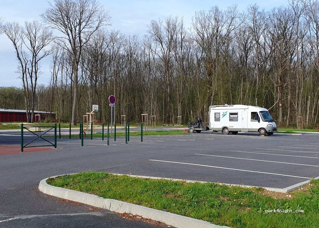 En lisière de forêt, à côté du gymnase, aire de jeux à 100 mètres. Tous commerces au village. Aire goudronnée. 2 places. Parking à proximité.