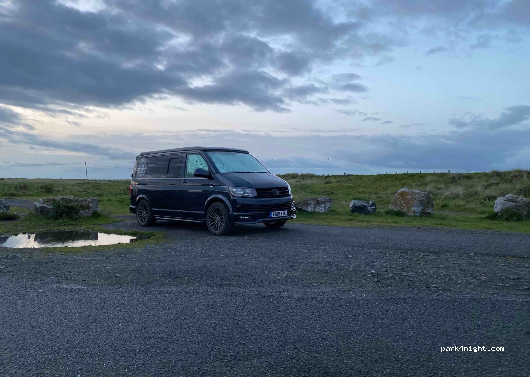 Toller Stopp, ein paar Parkplätze abseits der Straße und jede Menge Parkplätze auf der Straße. Perfekter Ort, nachdem man um Mitternacht von der Fähre ausgestiegen ist. An der Stelle, an der wir die Holzbrücke betreten haben, gibt es eine Höhenbeschränkung von 2,2 m. Weiter unten wurde uns gesagt, dass dies in Ordnung sei.