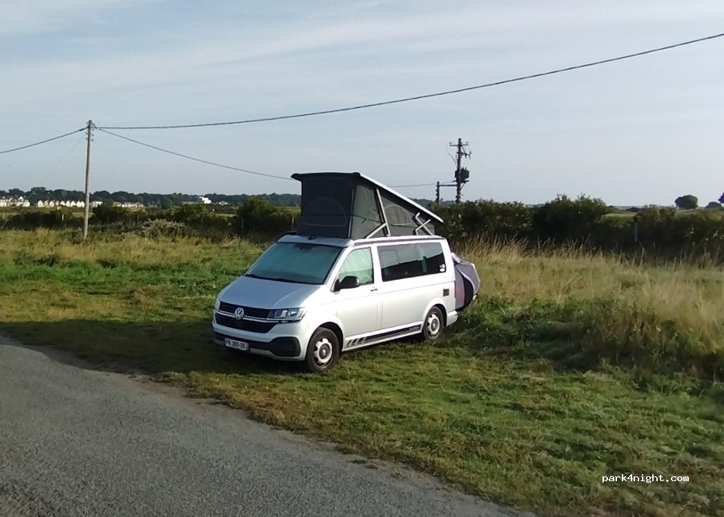 Emplacement parfait pour passer une nuit au calme avant de prendre le ferry tôt le matin. Juste devant l'entrée du golf on peut se garer sur le bas côté et rester en retrait de la route qui longe la mer. Emplacement à 15 minutes à peine du port.
