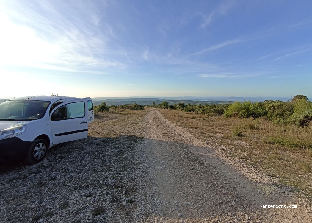 Un site magnifique où nous avons passé une nuit au calme avec notre fourgon Léon de 6m. Emplacement pour 3 ou 4 véhicules mais le mieux est d'être seul. Apéro et coucher de soleil au son des cigales. Levé de soleil magnifique. Je recommande ce site mais merci de respecter ce mieux et de le laisser propre.