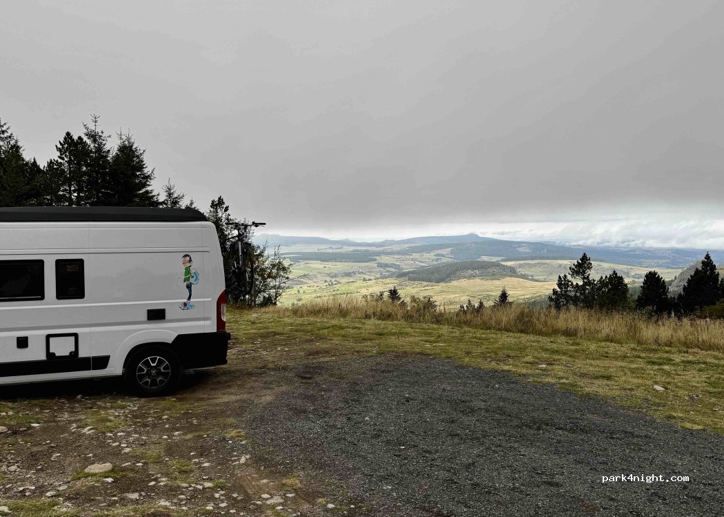 Quiet flat parking on the side of the road at the start of the trails towards Mont Mézenc. Altitude 1550m, easy access