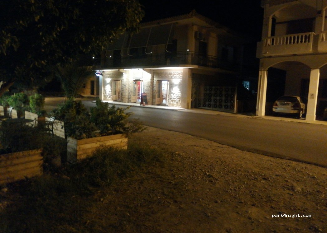 Der Platz liegt direkt zwischen zwei Tavernen. Wir haben den einen Wirt gefragt und es gibt kein Problem eine Nacht zu verbringen. Platz für ca. 2 Wohnmobile. Etwas abfallendes kiesiges Gelände. Die Straße, die am Platz vorbeiführt ist mäßig befahren. Nachts fahren immer wieder Autos mit hoher Geschwindigkeit am Platz vorbei. Tavernen in 50 m Entfernung bieten sehr gutes, reichhaltiges und zudem preiswertes Essen.
