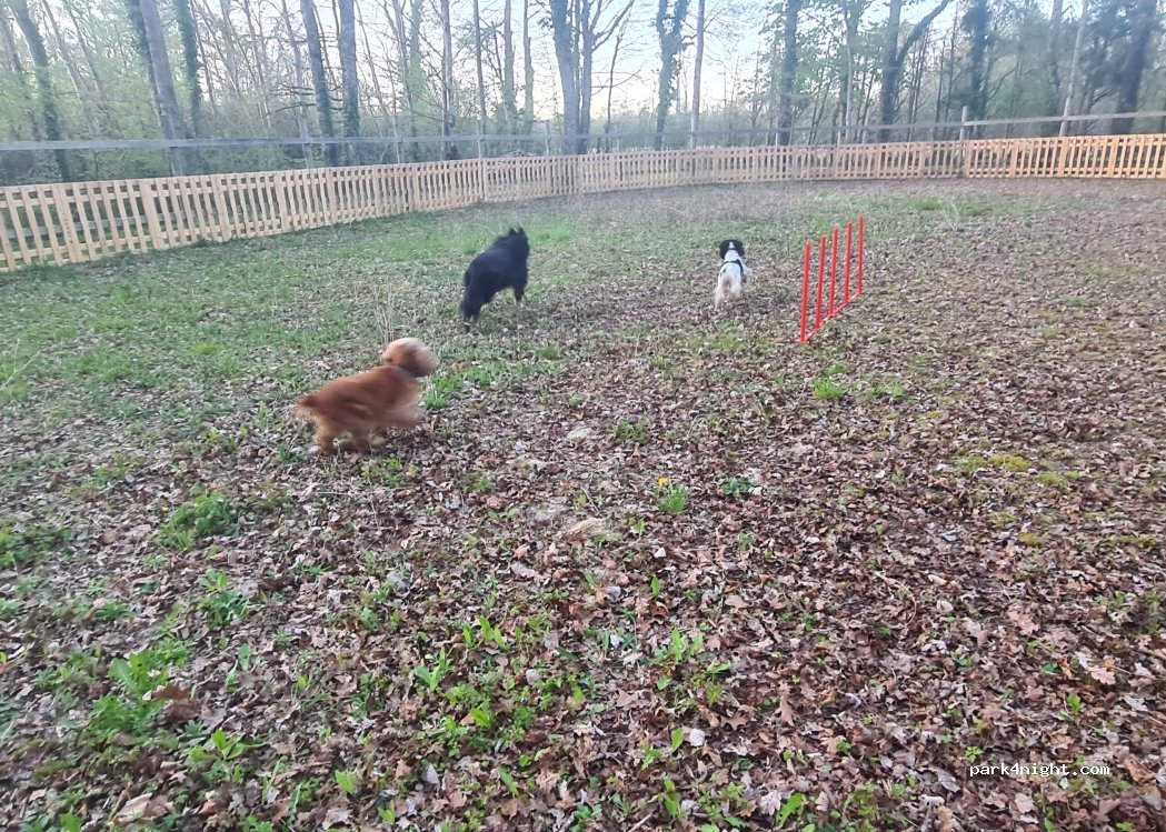 Endroit très agréable pour les 2 comme pour les 4 pattes ou ils peuvent se défouler à volonté dans le grand parc prévu à cet effet. Des hôtes très accueillants et bien sympathiques A recommander sans soucis si vous passez dans le coin