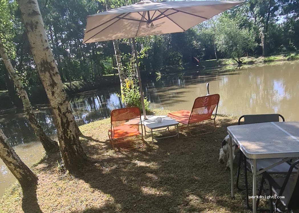 un endroit super le calme absolue les propriétaires super sympa les chiens sont super bien avec le dogpark et la baignade je recommande vivement nous y reviendrons avec plaisir lieu de pêche ? impeccable