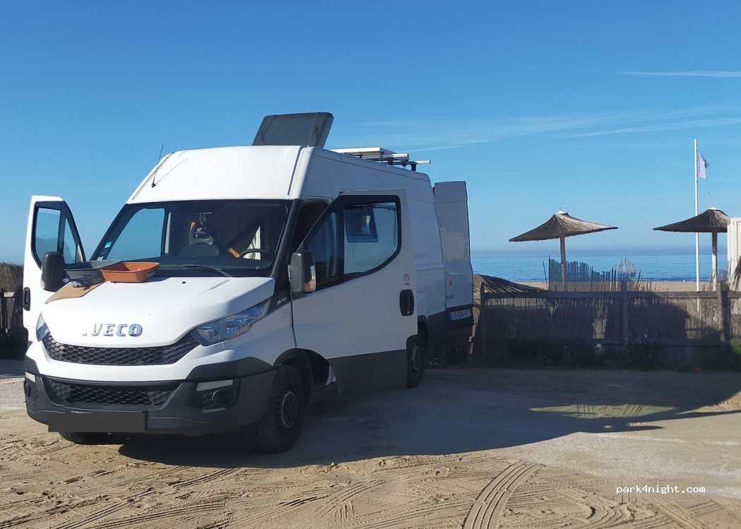 super arrêt pour une nuit, parking en bord de plage de sable. très calme. petit café à côté. bien adapté pour fourgon de 6m.