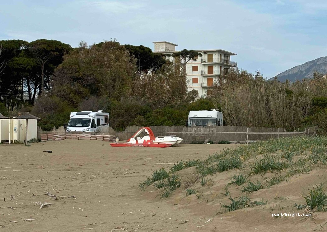 Parking without any service, ideal out of season when the lido is closed. Quiet, right in front of a beautiful fine sandy beach.