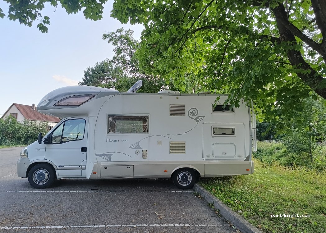 Effectivement super parking avec notre Dreamer. Pas de limite de hauteur ni longueur. Nuit très calme, idéal pour aller se rendre à Strasbourg.Commerce à proximité, merci à la ville de permettre se genre de stationnement.