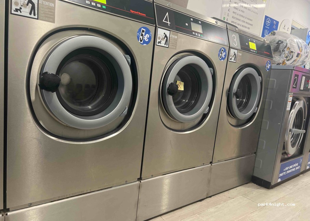 Laundromat next to the Carrefour Market Open from 7:30 a.m. to 9 p.m. non-stop.
