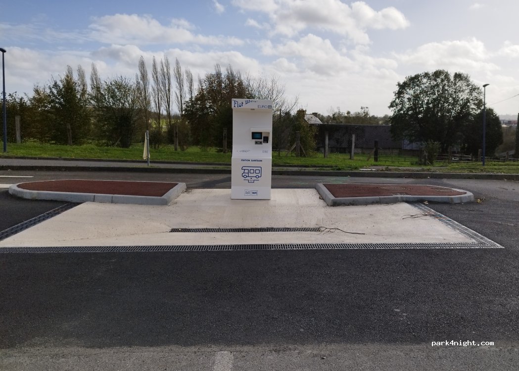 emplacement très facile d'accès en sortie d'autoroute quelque soit le sens d'arriver, Rennes ou Caen. Zone bien délimiter et vidange des eaux grises pratique et très bien faite. Seul bémol, lorsque l'on a juste à vider les eaux noires sans remplissage d'eau propre, il faut quand même payer le même prix.