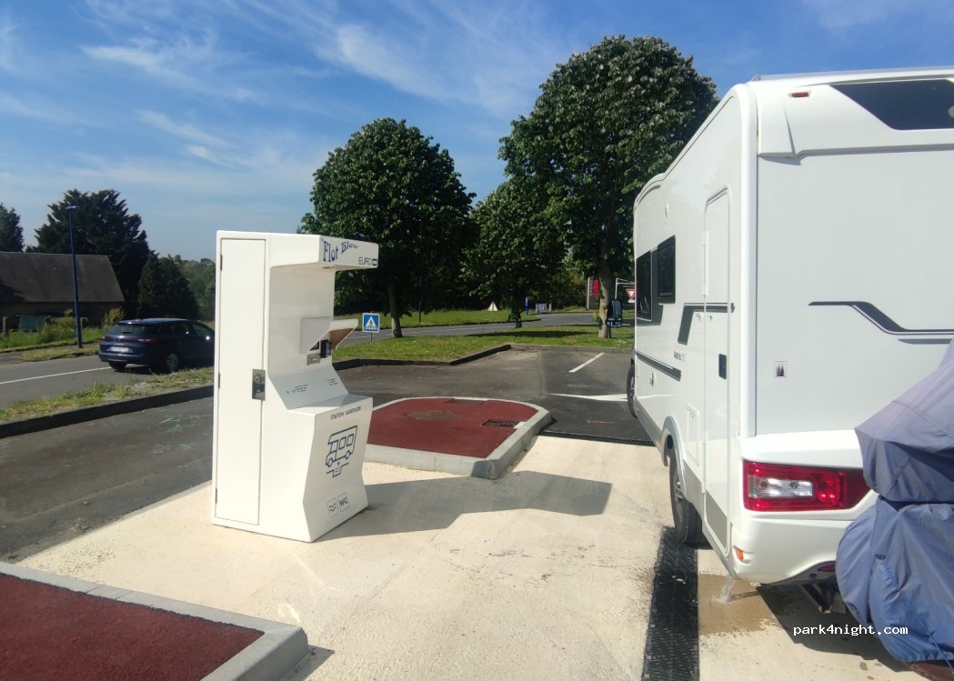 Bien pour vider les eaux grises mais pour la caissette il faut avoir envie, c’est dégeu et bouché… allez sur l’aire de services dans Avranches c’est beaucoup mieux
