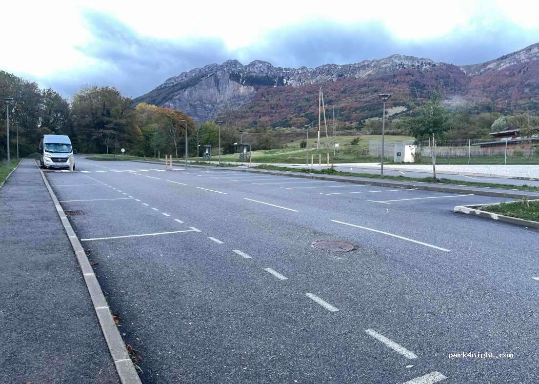 Parking du gymnase Marcel CUYNAT, places de stationnement en batailles pour petits véhicules et en créneaux pour grands véhicules. Aucun service.