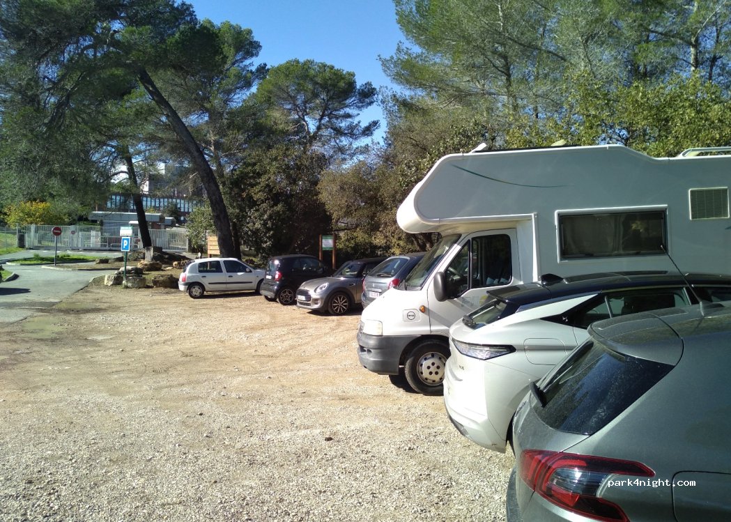 seul endroit à Valbonne où j'ai pu me garer. terrain pas parfaitement plat.