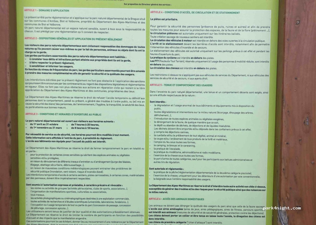 entrance to the departmental natural park of la brague.