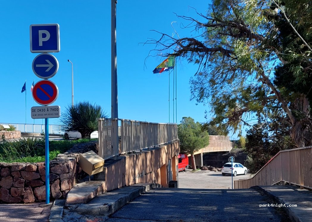 Daytime parking, at height, different from that at the Port. Prohibited from 12:30 a.m. to 7:00 a.m. Parking also used for cars. Motorhomes no more than 6m