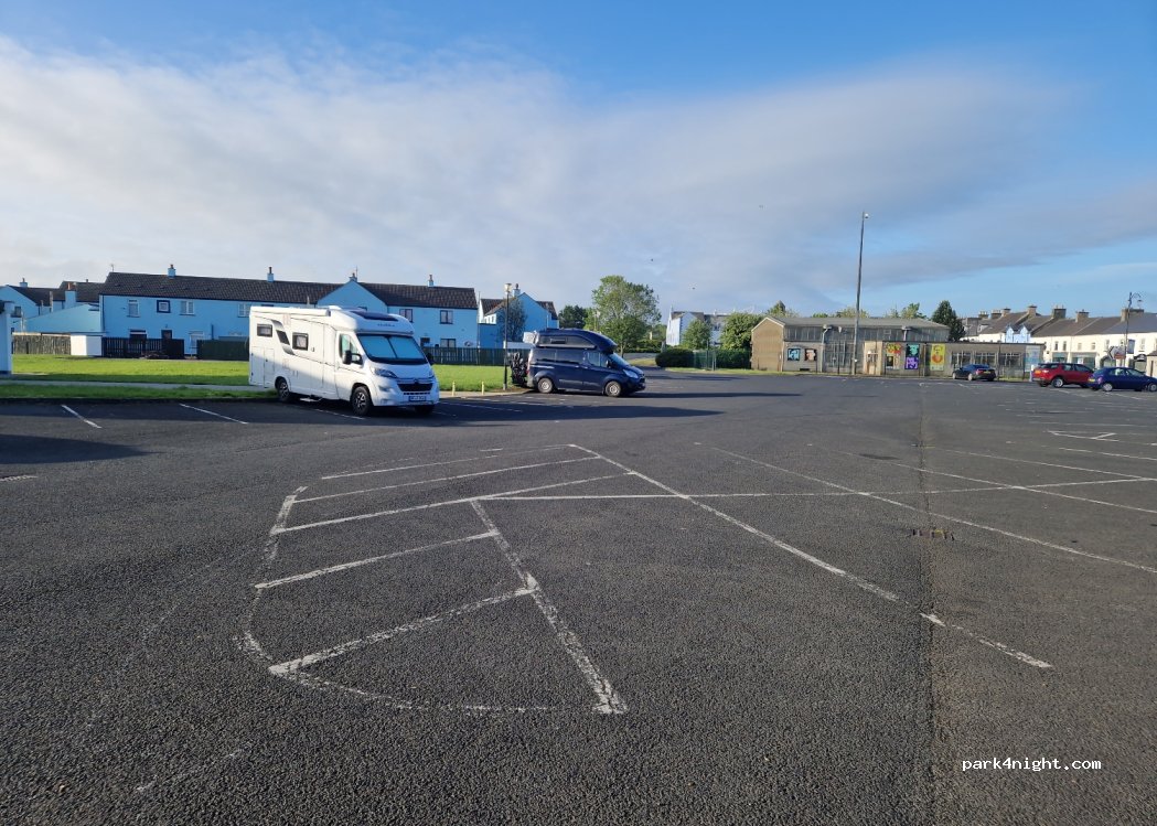Two other motorhomes overnight so very quiet, large car park, play park, Astro pitch & football pitch accessible. Toilets clean and very close to town centre. Definitely recommend!