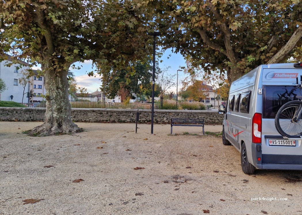 Commune of Vinay, close to St-Marcellin, in its central square, gravel part, it is possible to spend the night there while enjoying the local entertainment, bakery, bar etc... Very close by is a pretty park for children. you can also visit with your family the Grand Séchoir 1.5 km towards Voiron.