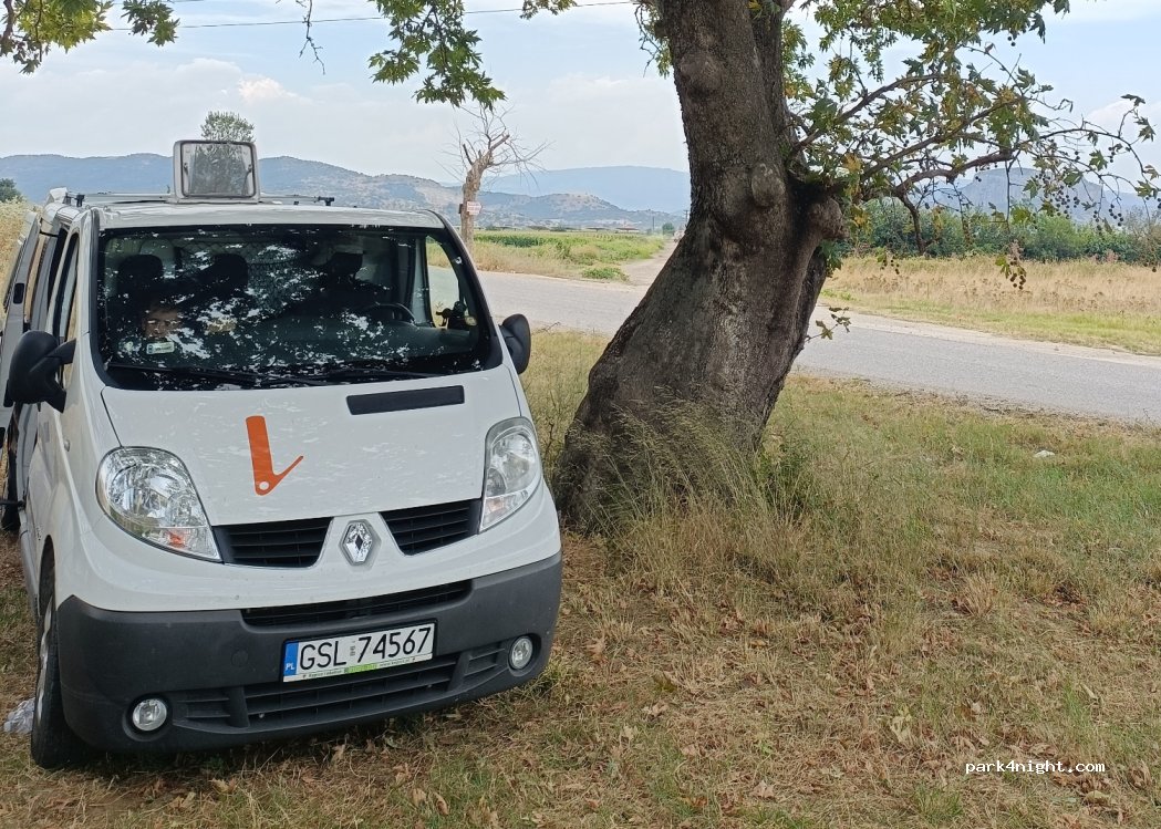 Great place to stay, lots of shade, very friendly locals. In the neighboring village there is a wonderful tavern. Behind the meteor there is a historic 16th century bridge and the bed of one of the largest rivers in Greece. The only downside is the mosquitoes after 8:00 p.m. Nearby there is a water tap and a trash can.