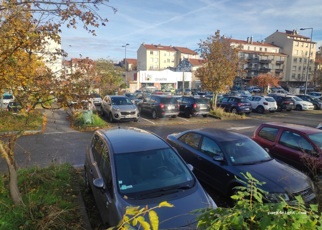 Parking goudronné plat. Proche centre ville. Gratuit la nuit, mais payant le jour.