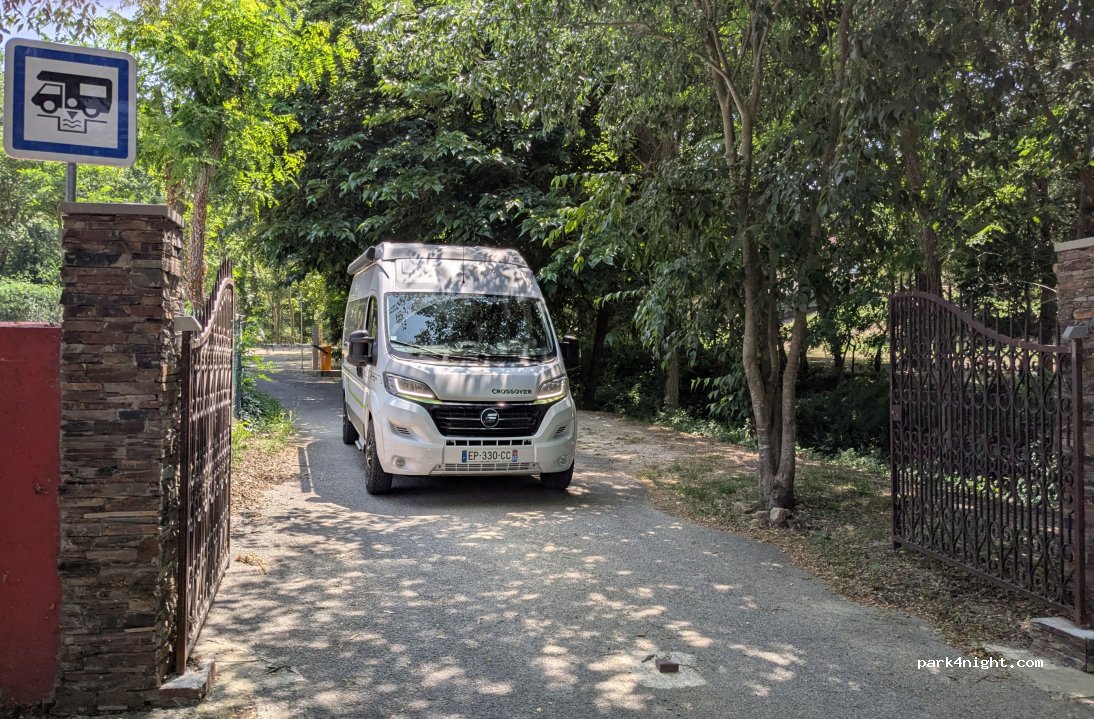 Au top cette aire de camping car, le propriétaire l’a fait petit à petit mais c’est déjà très bien pour le prix. Chaque emplacement a une dalle en béton et espacée. Elle est juste à côté du camping. Dommage que la rivière est asséchée.