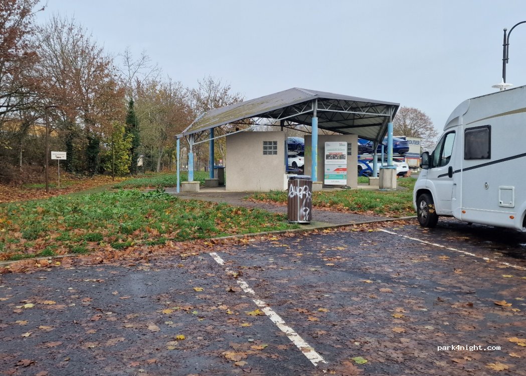Aire de repos avec suffisamment de places pour passer la nuit. Il y a des toilettes.