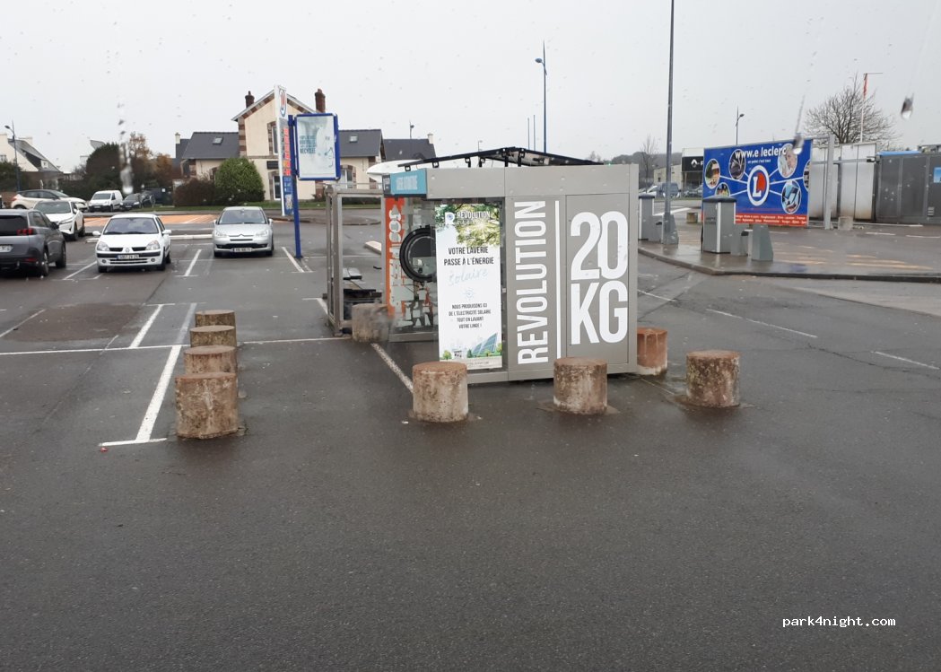 1 machine de 9kg (5€) et 1 de 20kg (12€ +1€ prélavage + 1€ pour l’assouplissant) lessive intégrée. 1 sèche linge 20kg 3€ les 20min. Distributeur de pizza à côté. Sur parking de Leclerc.
