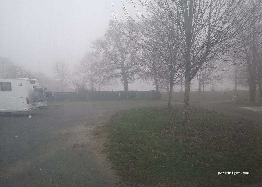 Merci à la municipalité pour votre accueil camping-car. Parking agréable malgré le brouillard ce matin, avec vue sur l'étang Duris et des oies sur le chemin, vidanges et eau, tout gratuit, électricité avec jetons, poubelles de tri. Que demander de plus avec la campagne et le calme tout autour.