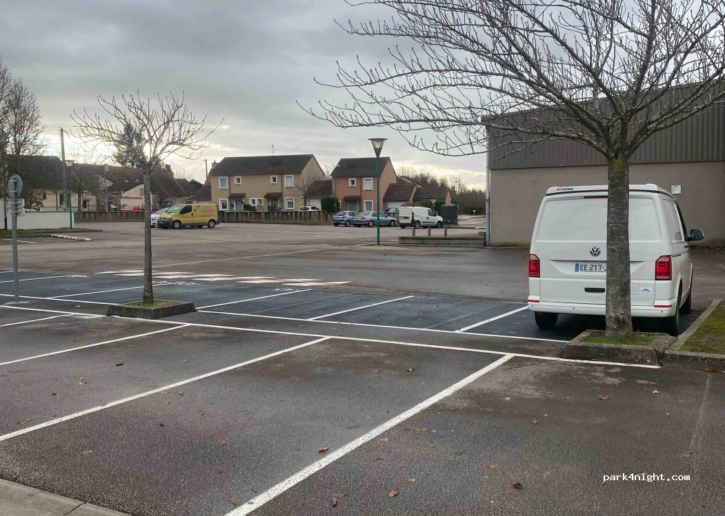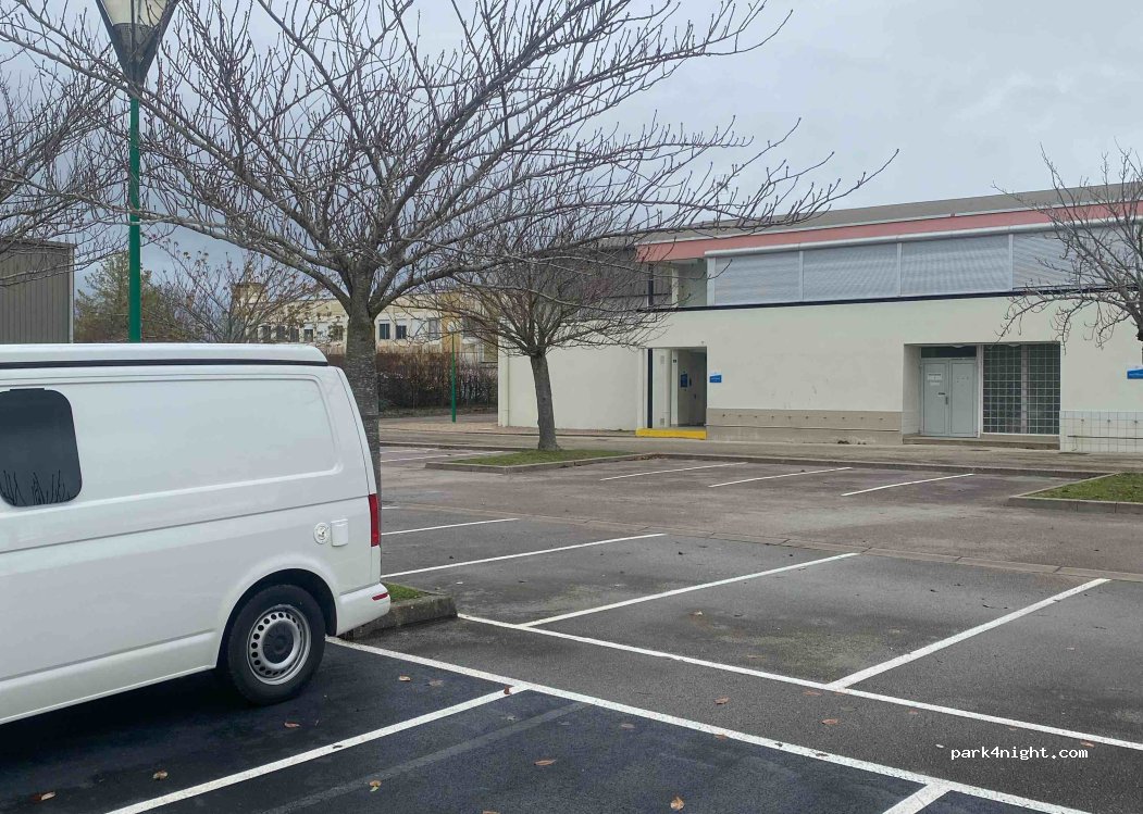 Großer zugänglicher Parkplatz neben dem Gymnasium und der Hochschule Saint-Marcel. Das hilft für eine Nacht. Barrierefreie Toilette neben dem Judoraum. In dieser Saison nicht gestört. Lärm von Schülern, die morgens zum Sportunterricht gehen, aber nichts Störendes.