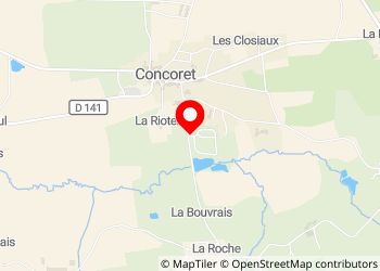 Cadre verdoyant et paisible, à 700 m du village et des commerces (boulangerie à 500 m, supermarché à 1 km).