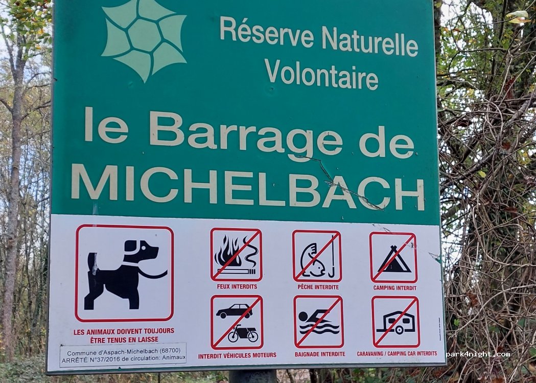 Endroit agréable. Deux zones de parking, dont une partie stabilisée. Entouré d'arbres. Accès direct et rapide au lac de Michelbach depuis le parking par un petit chemin... sympa pour un lever ou coucher de soleil sur le lac.