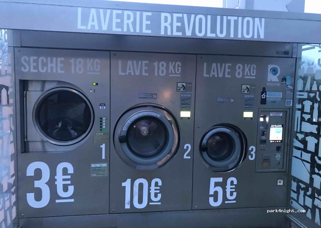 2 machines à laver et 1 sèche-linge directement au supermarché « Casino ». Le linge est propre, sent bon et est sec au bout de 40 minutes. Le lavage a duré 29 minutes.