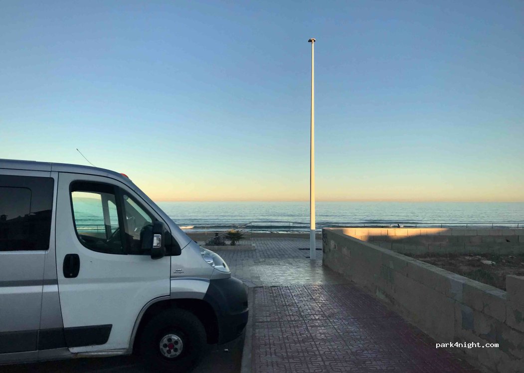 Ich habe hier im Dezember ohne Probleme zwei Nächte lang mein Wohnmobil hier geparkt. Herrliche Sonnenuntergänge, Spaziergang auf der Promenade. Sandiger, sauberer Strand. Herrliches Meeresrauschen über Nacht.