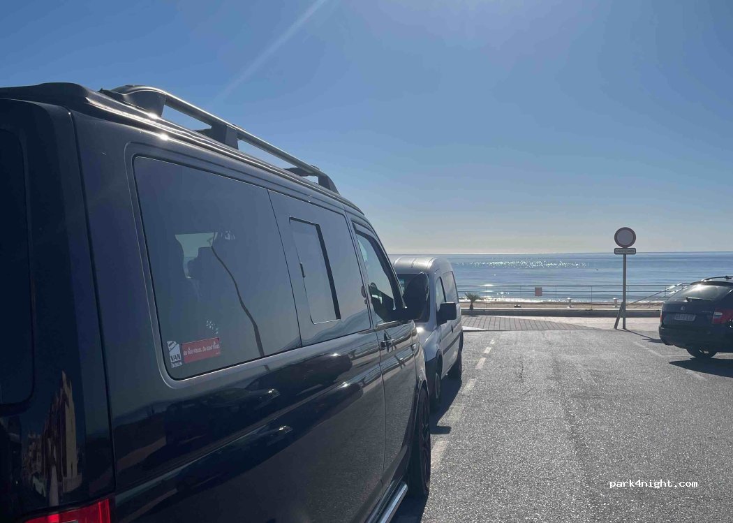 Parked my campervan here for 2 nights with no problem in December. Gorgeous sunsets , walk on the promenade. Sandy clean beach. Lovely sound of the sea over night.