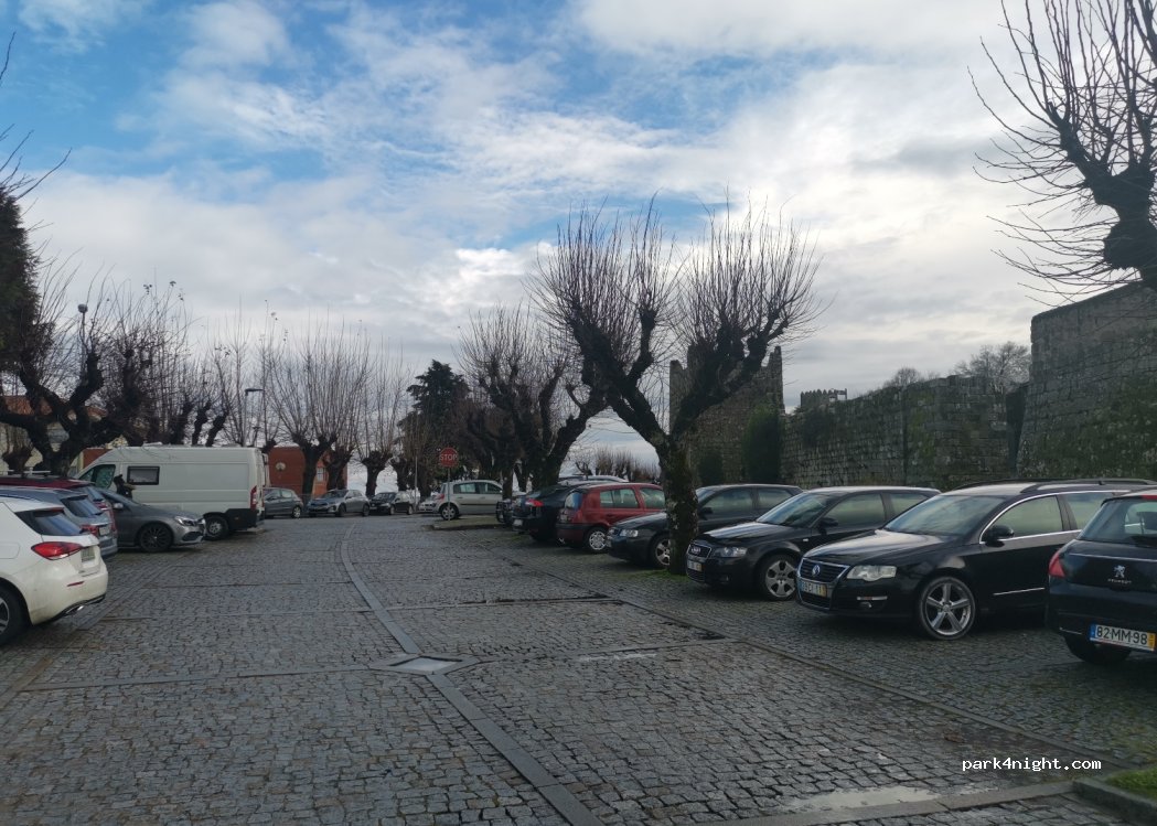 Paved and leveled. It's next to a road, so we heard a few cars before falling asleep, but we had a peaceful night. It was Thursday night, so we couldn't park at the main big parking lot because of the market that happens Friday morning.