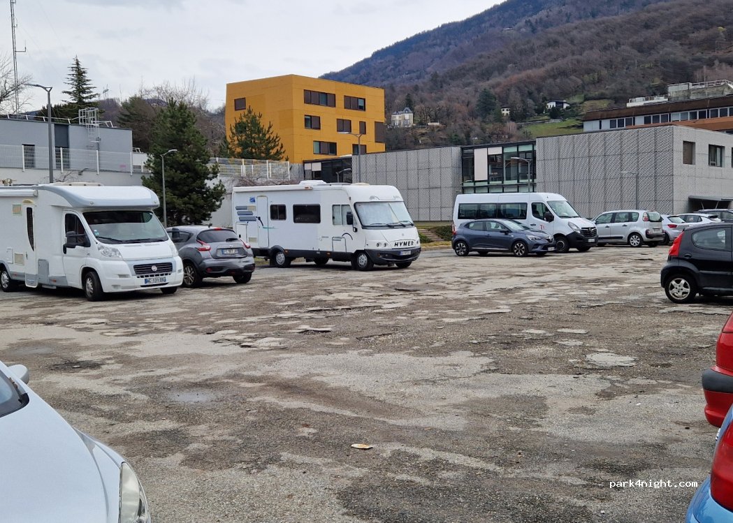Simple parking plein de voitures et assez bruyant... à part imposer un camping rien n'est prévu pour les camping-caristes... j'éviterai Albertville qui n'aime pas les camping-caristes apparemment.