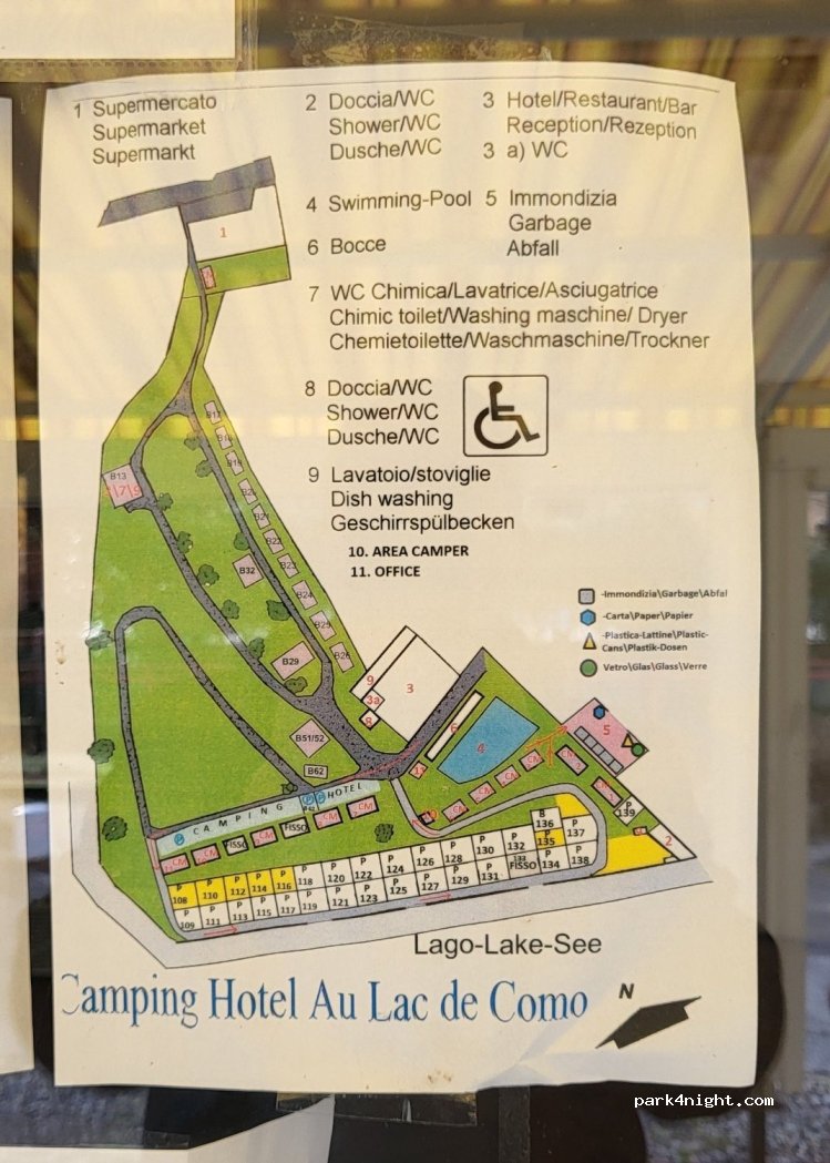 Camping directly on the lake, pitches and permanent houses. bar/restaurant. clean, heated and fully equipped bathrooms. kind manager (even if he only let us stay for 3 nights for at least one). open all the year.