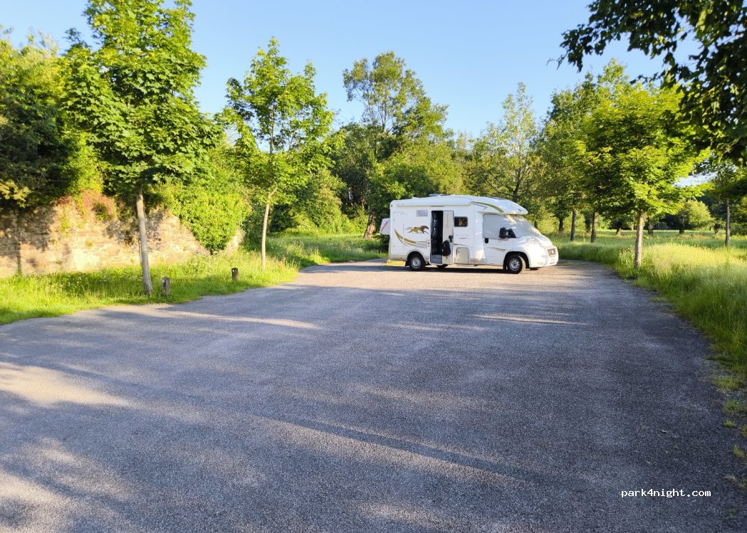 Nous y avons passé deux nuits tranquilles. Quelques voitures de promeneur mais lieu calme et agréable proche de tout. Malheureusement nous constatons aujourd'hui qu'il est occupé par des gens du voyage. Impossible de s'y garer.