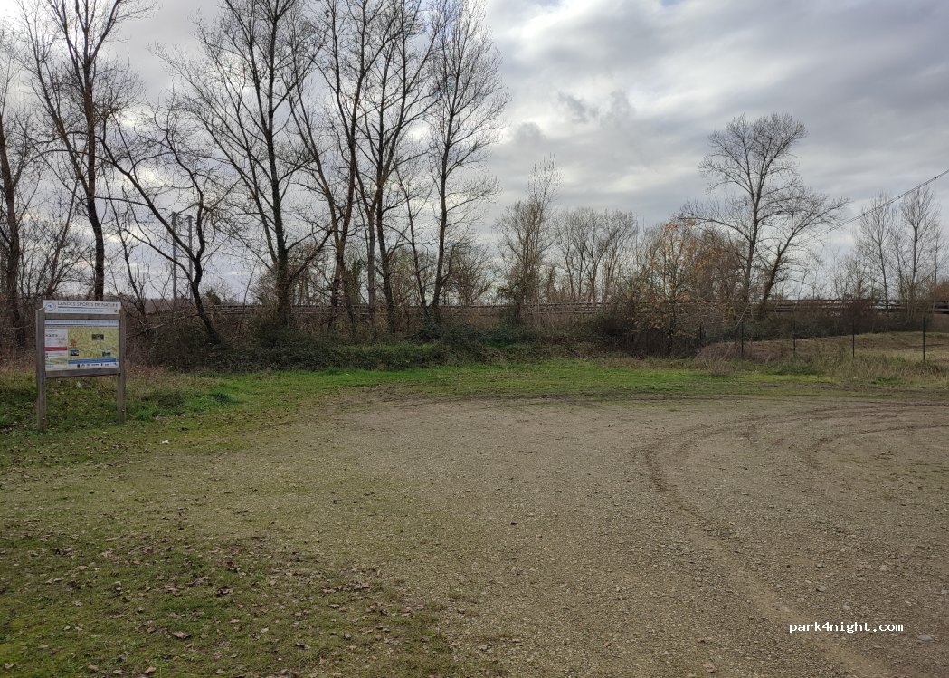 Endroit qui est au bout d une voie sans issue. Très calme, mais isolé nous n y sommes pas restés pour la nuit, nous avons préféré le parking du début de la rue !